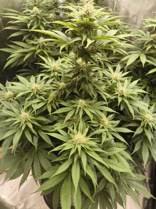 DRXXI_GER Mimosa x Orange Punch is moving along nicely in flower. Buds are filling out and getting stickier, with the smell starting to kick in stronger. Most pistils are still white, so there’s more swelling to come. Stretch is done and the plant is now all about building those buds.
