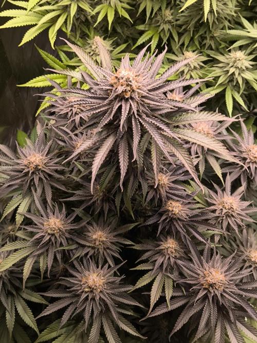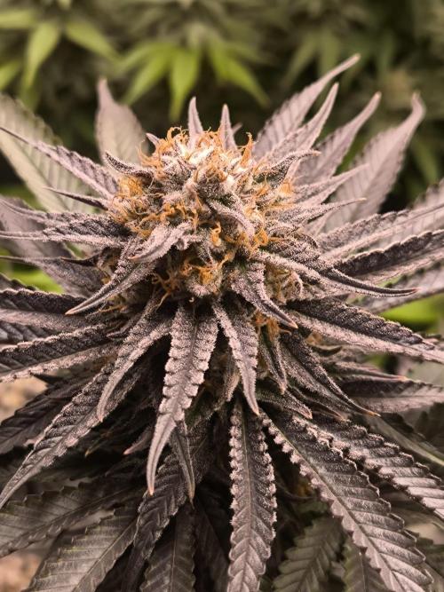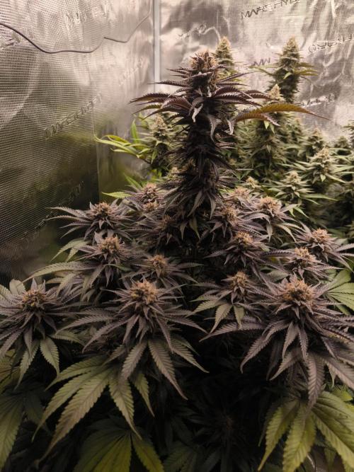 DRXXI_GER The plant looks very healthy and vibrant. It’s starting to show beautiful purple hues, especially on the sugar leaves and bud tips. The flower structure is developing nicely with dense pistils and a strong trichome presence. Everything is on track.