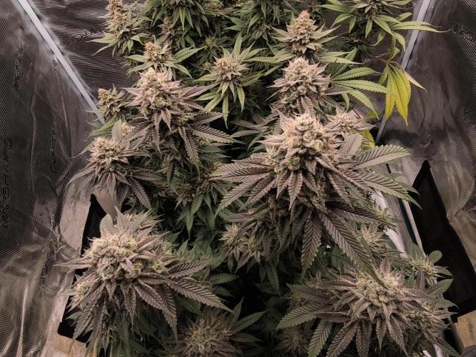 Pineapple Express, day 71 from seed, day 22 of flower. Buds keep getting denser, resin is increasing. Stretch is over, flowers are now maturing.