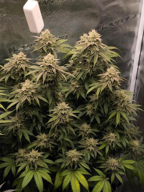 Pineapple Express, day 71 from seed, day 22 of flower. Buds keep getting denser, resin is increasing. Stretch is over, flowers are now maturing.