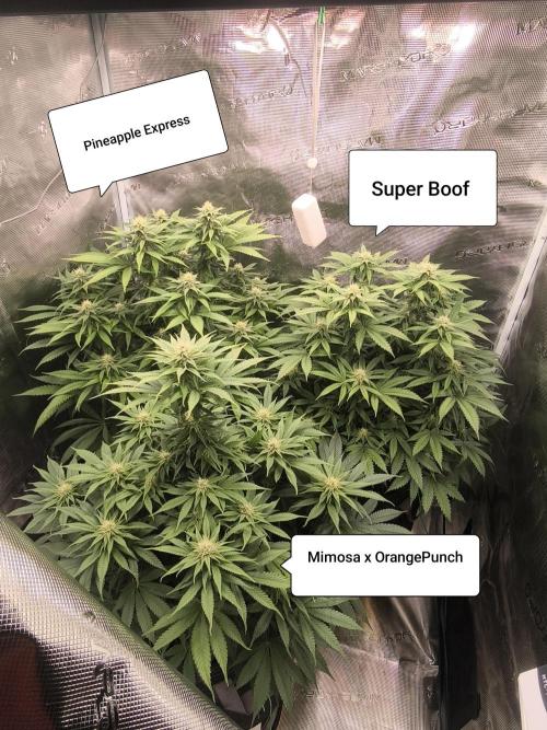 Pineapple Express, day 72 from seed, day 22 of flower. Buds are getting denser with more resin showing. Stretch is done, now it’s all about developing the flowers.