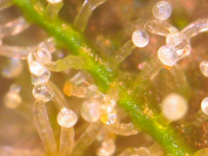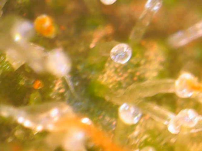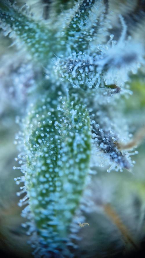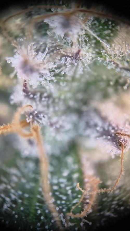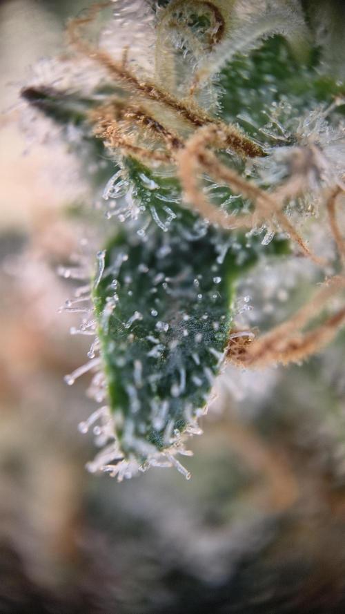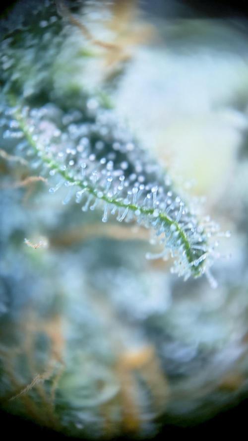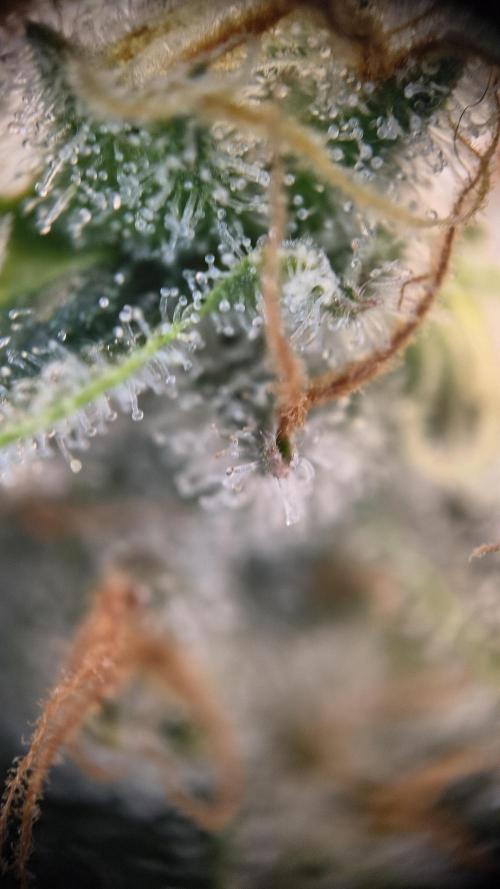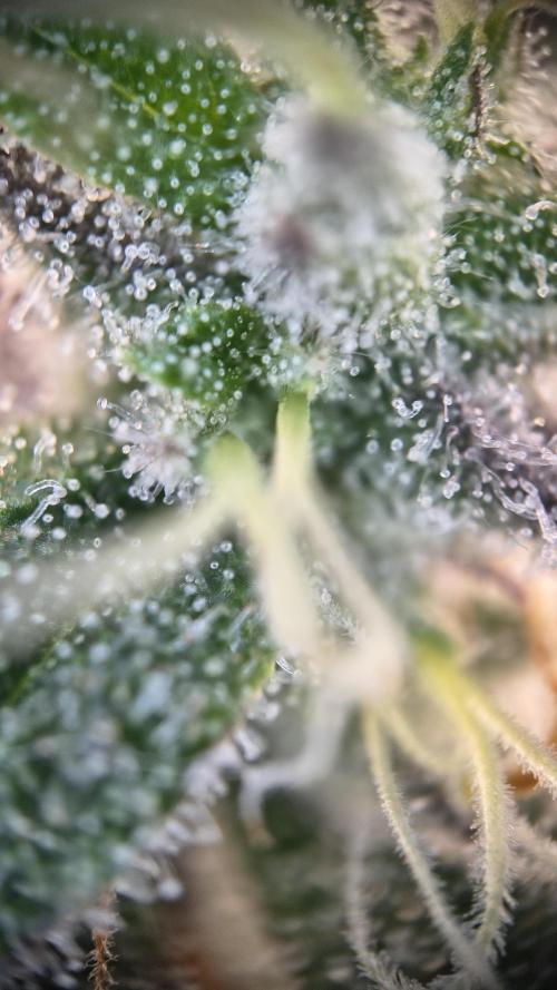 InsideTheTent The last week before the harvest, time for the flush. The buds are getting really dense, I like it. I added a few microscope shots. The further away shots are made with one of those lenses you can attach to your phone. The other ones are made with a cheap standalone microscope that attaches to your phone via USB.