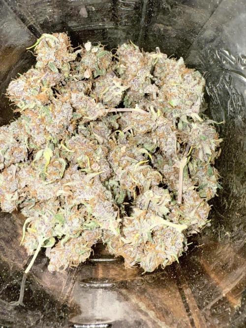 lovely color, gorgeous trichomes flavor is sweet and herbal/berry with tones of a fumey/diesel-ish finish