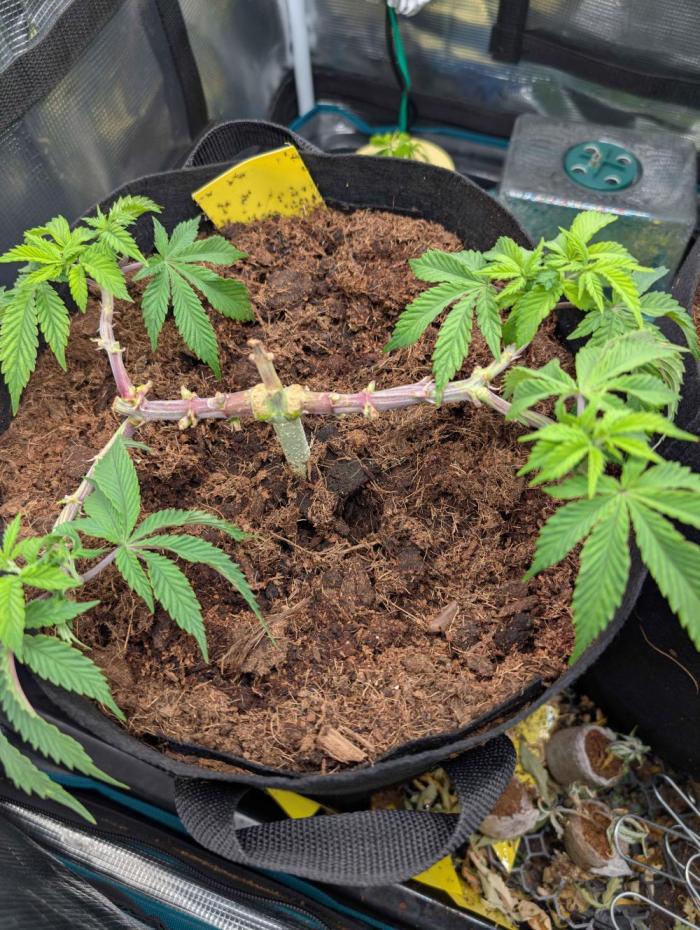 Topped, Defoliated and main-lined. Trying to save some cuts.