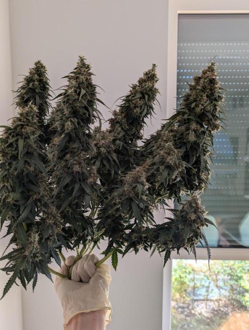 420Germany Plant is weird, I still do like it tho even if it slowly shapes into a fucking christmas tree. I am not sure why this plant is so big on the leafe production, the smell is good and the size is decent!