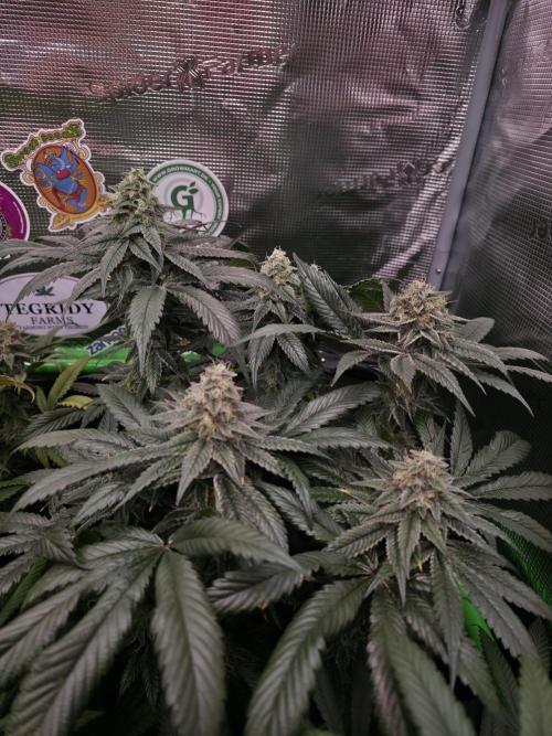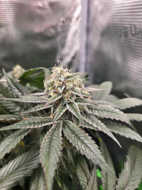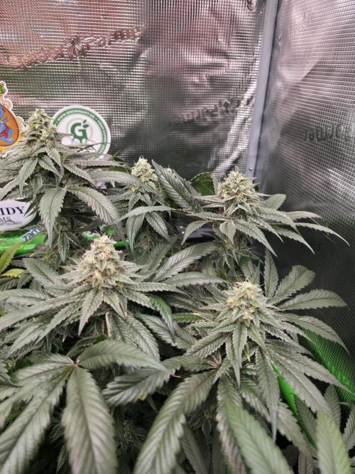 @420Germany, haha Danke, is wirklich ne feine, man muss aber glaube wenn man trainiert eher richtung mainlining und HST gehen, mit LST reißt die die Stäbe nach paar tagen wieder aus der Erde 🤣💪 echt starkes Wuchsbild und sehr robuste Seitentriebe. Aber bin nicht ganz so zufrieden leider, die Buds oben sind schön dick aber unten die bekommen kaum Licht weil sie so eng gewachsen ist 😅. Naja Ausbeute hier wird etwas geringer aber dafür riecht sie super und ist extrem Harzig, auch bei den kleinen Buds unten. Nächste Runde kommt die Limited Edition von Zami X Tical, hoffentlich performt die ähnlich gut.