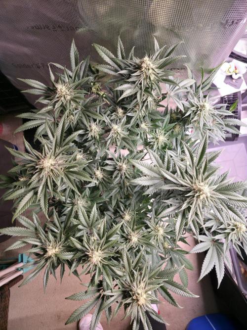 McBubatz 10. Woche, Pinky gehts tip top, N wird jetz reduziert und auf PK fokussiert. Ansonsten alles gut, Buds bilden sich immer mehr aus, Trichome werden massenhaft produziert und stinken tut die kleine auch ganz gut 😁, Geruch ist momentan etwas würzig/fruchtiges was in Richtung Pink Grapefruit erinnert, bin echt gespannt wie das Endprodukt wird.