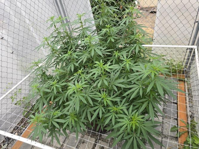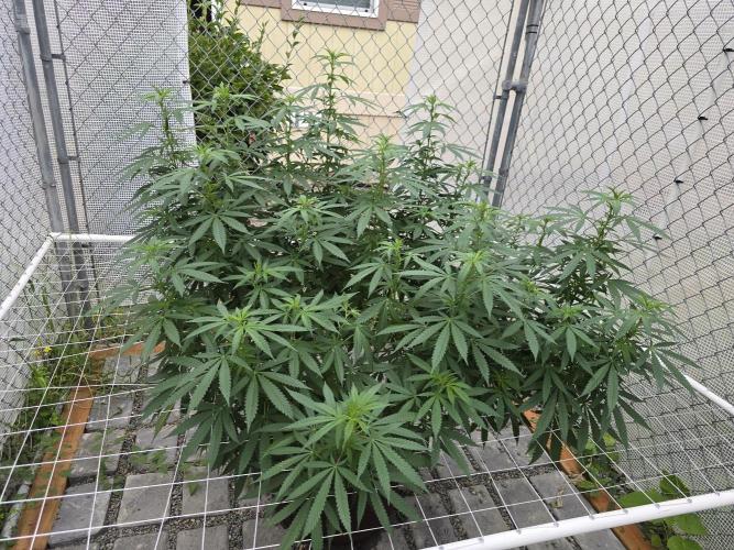 leithsffs I noticed the tell tale light green colors of preflower about a week ago. So, I'll start the flowering clock now. Mid to late October will be good for a late season harvest. If she were in a tent, she'd need a 4'x4' tent as she is 45 inches by 45 inches.