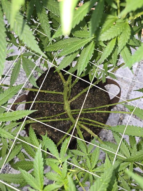 leithsffs I'm not sure if this will work well or not. But, I decided to scrog this plant out to help keep the height down and to give the inner and lower growth more chance to get some sunlight. I had an extra 5 foot long piece of pvc that I use to water it. Thank goodness for extra pieces!