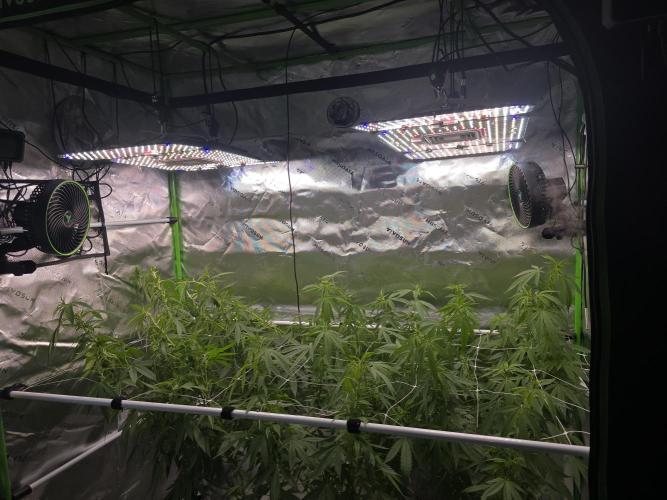 leithsffs Just some nutrients and patience this week. I'll probably need to defoliate this weekend. If anyone is curious, the scrog net is 60in x 72in. The plant takes up about 48in x 48in of that space.