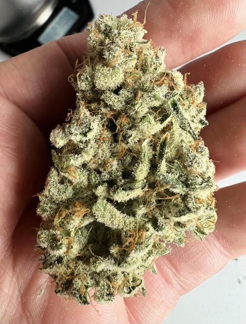 CannaJammin Pound Cake auto got the chop on Day 94. Vanilla, Cake, Musky, Slight Berry Notes. I was originally guessing 6.5oz from this a couple weeks ago but we will have to see. It’s pretty chunky now. Drying now on day 5. Will update yield and smoke report once ready below. Very easy grow. Wish I cleaned up the lower buds early on I think it would’ve finished sooner. Can’t wait to see how it cures up and smokes! She sure is frosty! Busy week had to rush harvest late at night and used the flash on my phone for most pics. Wish I took pictures inside the tent just too many plants and not enough space. But overall happy with the grow. Very beginner friendly plant. Update: 10.2 oz from one Pound Cake auto. Not bad! Not as dense as I was hoping more on the fluffy side but looks and smells great 😊 Will update once cured with smoke report. 5 gallon, Coco/Perlite, 20/4, Mega Crop part 1, OAC Calmag, Recharge.