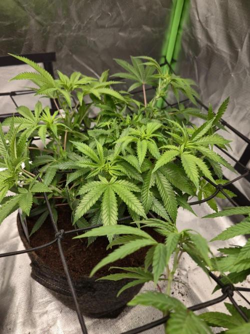 This plant is looking well-trained and spreading out beautifully! The main stem has been opened up with some strong LST, allowing light to hit every single top. New growth is healthy and vibrant green, with multiple bud sites forming along the branches.