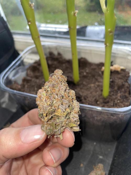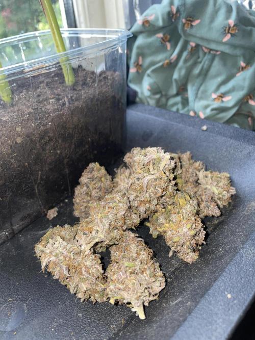 Philhsy Grew by itself, a nice tree with huge main cola and big side branches, violet/purple color on most buds, and the smell is insane, as is the trichrome production. Trimming this baby will glue my fingers together haha. Cant wait to smoke this grease bomb!