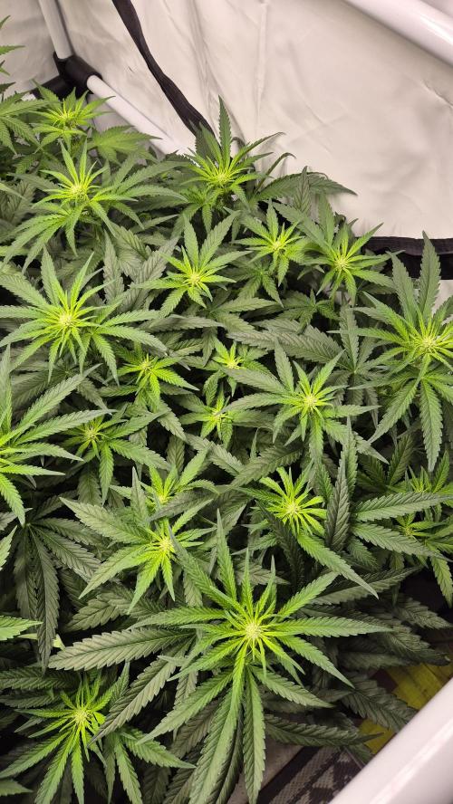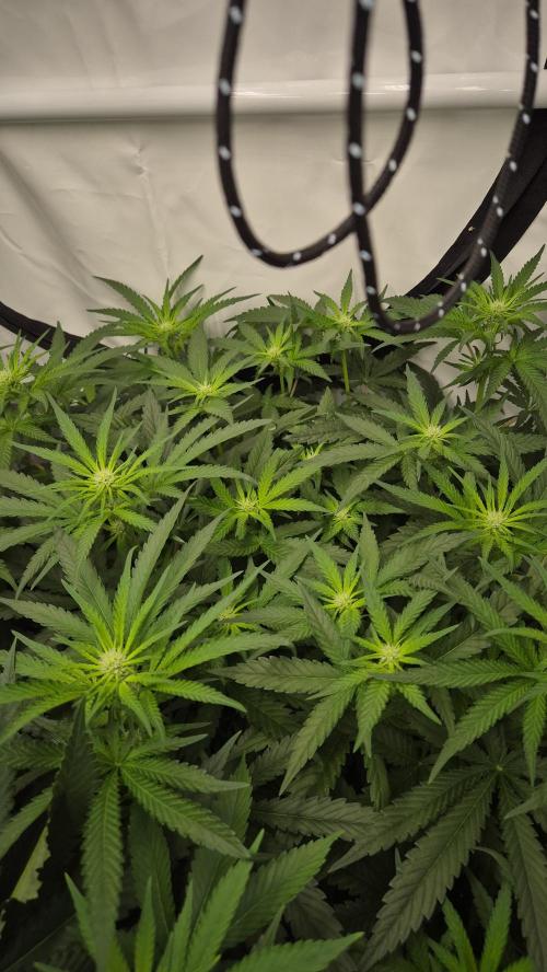 * Wichtige Ereignisse: Wechsel des Lichtzyklus. Reduzierung des DLI. LST um die Pflanzen auf gleicher Höhe zu halten
