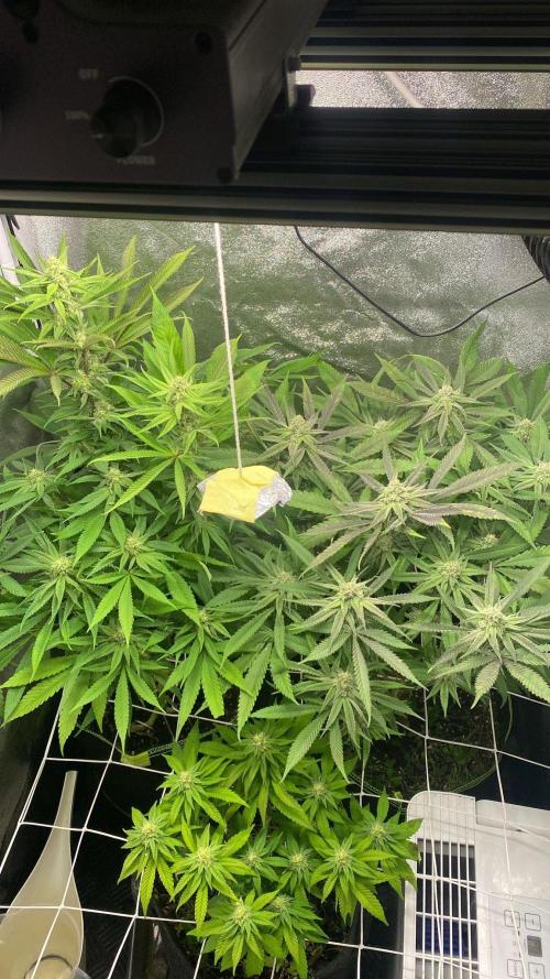 WeedleyScott Ich habe zwei Wochen verpasst aber hier mal ein Update, die Blüten siehen schön aus und fangen an zu Purplen ich nehme gelegentlich roße Blätter raus damit nichts verdeckt wird ansonsten gieße ich einfach.