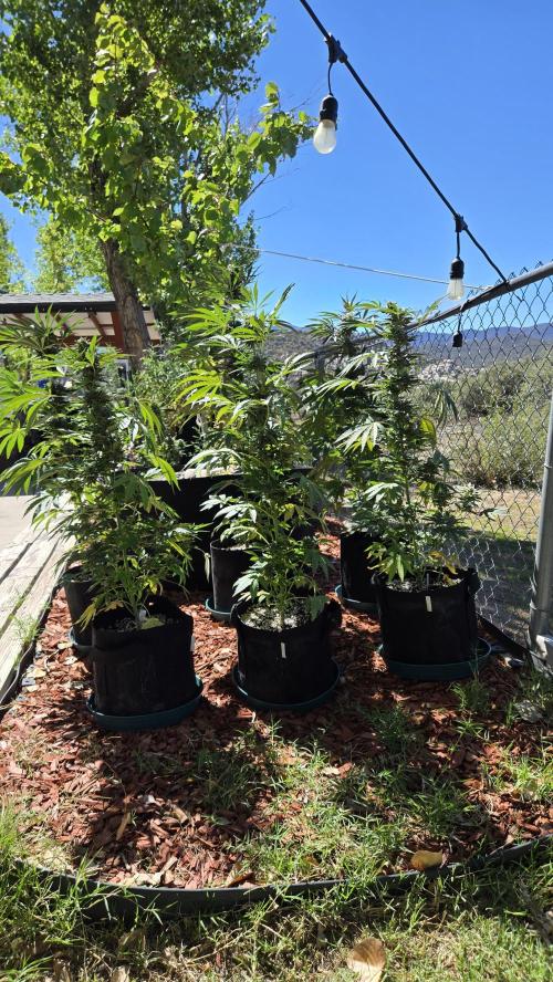 What up, fam, little update on these beautiful girls. They got rained on a few times the last couple of days as we've had some summer storms come through. I'm starting to see some pistols on one. I'll guess the other two won't be too far behind. All in all, Happy Growing.