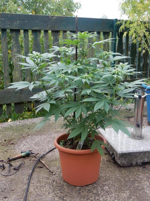 Es ist schwer, die Wassermenge für die Pflanzen festzulegen, wenn es die Woche über mehrfach tagelang regnet. 😒Die beiden Pflanzen sind jedoch in die Blütephase eingetreten und ich muss das Growzelt langsam wieder in Betrieb nehmen. Beide Ladies sind sehr gut und gleichmäßig gewachsen, diue eine etwas mehr ans die andere. Beide werden sie nicht ins Growzelt passen. Ich stehe vor der schweren Frage, welche ich nehmen soll, die Kleine etwas mehr breitblättrige oder die Größere, besser riechende? 😏