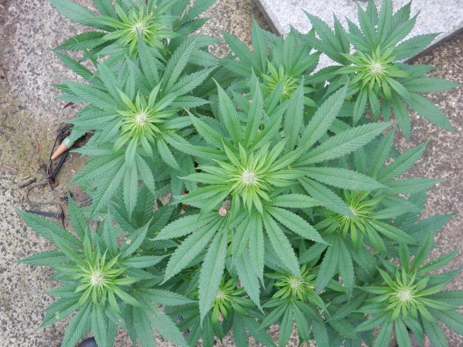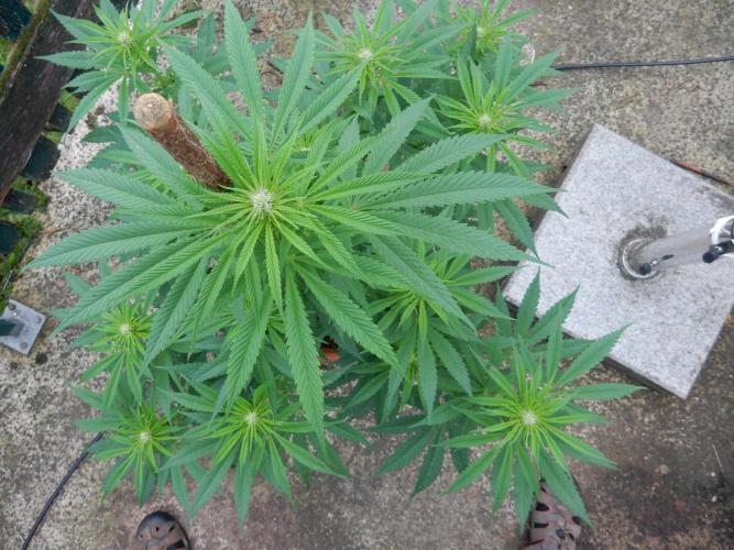 birdmountain Es scheinen zwei unterschiedliche Phänotypen zu sein, mit unterschiedlichem Wuchsdrang. Nr. 1 hat bereits 50 cm erreicht, Nr. 2 hinkt mit 37 cm hinterher. Beide sind sehr krautig mit schönen recht gleichmäßigen Seitentrieben, was ich durch drehen der Pflanzentöpfe zur Sonne hin versuche zu erreichen. Nachts geht es in die Growbox, morgens wieder ins Freie.