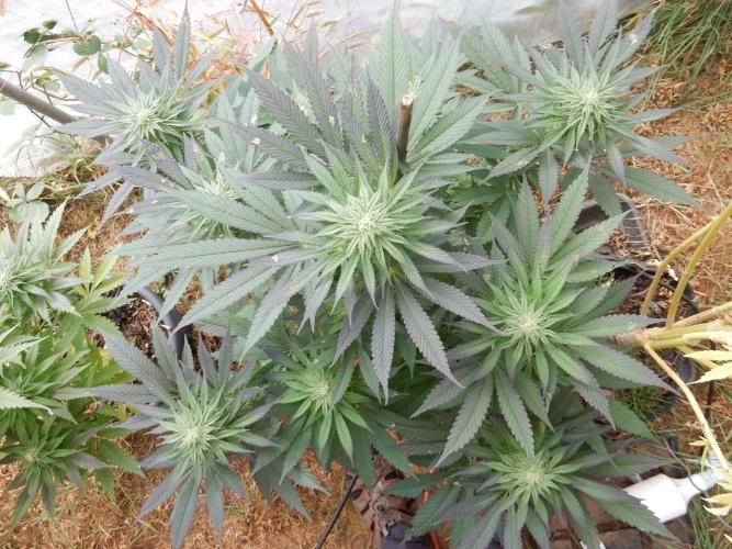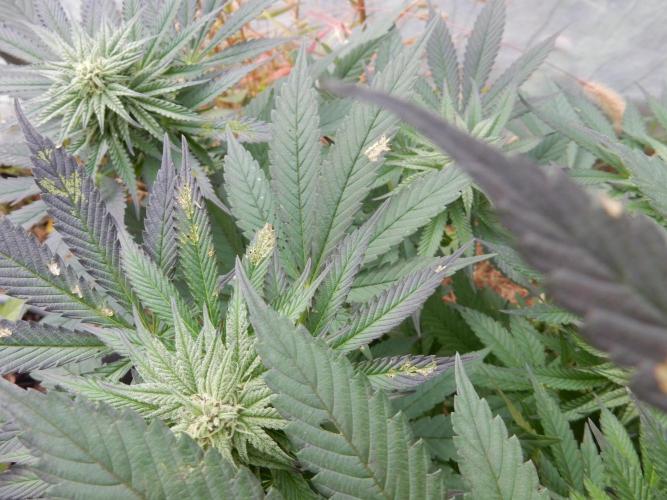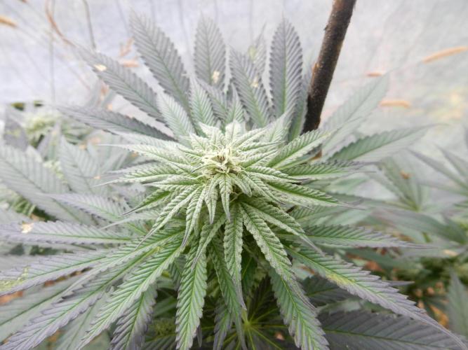 birdmountain Aufgrund der nicht so kalten Woche, sind die beiden Ladies im Folienzelt verblieben. Es zeichnen sich immer mehr zwei Phänotypen heraus. die niedrigere Pflanze hat wesentlich kräftigere Blüten und duftet stärker. Die Blüten sind sehr dicht mit Trichomen besetzt und schimmern hell. Die Blätter sind noch saftig grün und etwas dunkel, was leider auch ein paar kleinen Raupen gefällt, die ich an ihnen entdecken konnte. Das Outdoor Experiment geht in die nächste Woche.