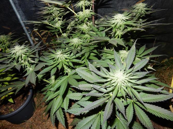 birdmountain Es scheinen zwei unterschiedliche Phänotypen zu sein, mit unterschiedlichem Wuchsdrang. Nr. 1 hat bereits 50 cm erreicht, Nr. 2 hinkt mit 37 cm hinterher. Beide sind sehr krautig mit schönen recht gleichmäßigen Seitentrieben, was ich durch drehen der Pflanzentöpfe zur Sonne hin versuche zu erreichen. Nachts geht es in die Growbox, morgens wieder ins Freie.