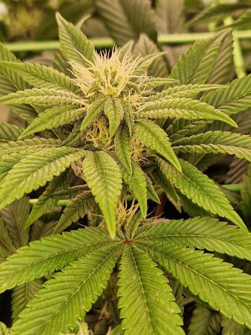 TrickzGrowz An manchen Blättern zeigt sie einen Genetik-Fehler in Form von kleineren Wuchs und Verfärbungen.