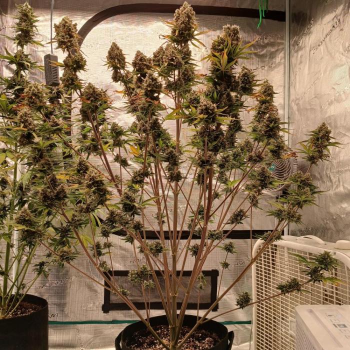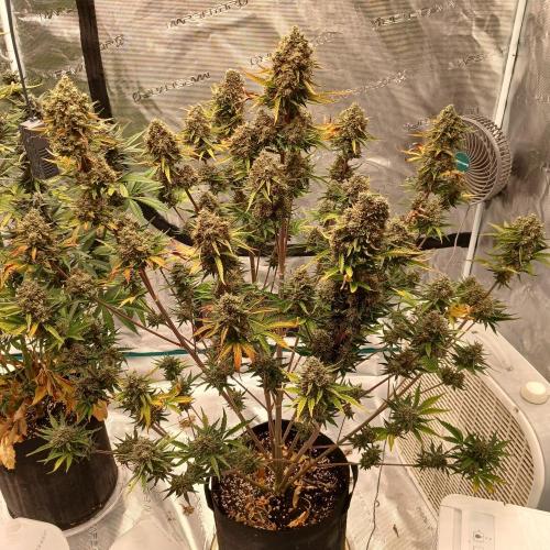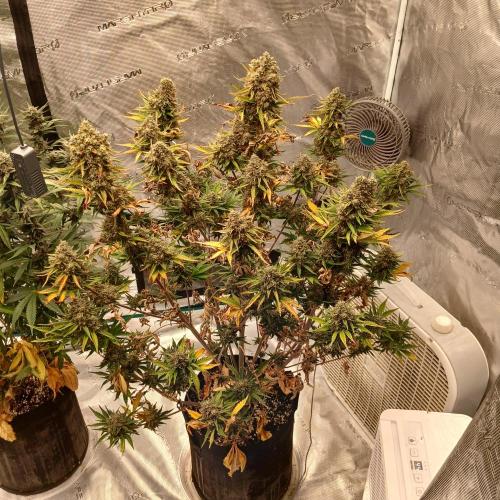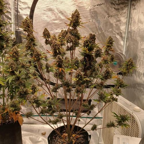 piggysperpetualGrow Extreme heat. Been super busy since Monday. Out of town, missed watering acouple of days. Finally had extra time to clean this one down a bit. Gotta love a good shedding plant who cleans itself. The spaced flowers on this helps. Going to be easy trim. These flowers are super dense hard, all the way down. I don't think I'm getting any larf on this one. Looking at it it's going to be around 6-7 ounces. I want to kinda stress the fact that this plant shows mutations that can be very dramatic and that this plant is most likely not the norm for this strain. From everything that everyone has told me and forums about fast buds (mutation, hermaphrodite, wrong seeds for packaging), in my mind it's kinda like the 90s and 2000s Bethesda. There's gunna be jank (you're witnessing it with this plant), but there's still tons of enjoyable moments and even sometimes that perfect jank can be the most memorable experience of it all.