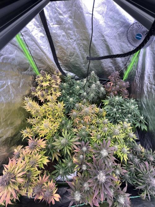 Canna055 Ich denke die ersten Pflanzen werden die nächsten Tage geerntet, die Frostbanger hat in 3 Tagen komplett dke Farbe gewechselt und sieht sehr lecker aus auch die 1ste Lemon Cherry Cookie sieht fast fertig aus.