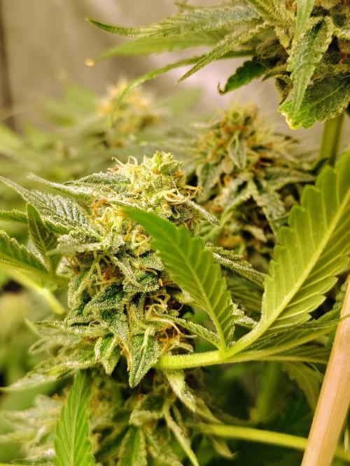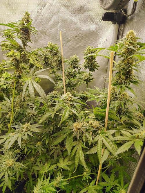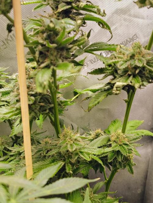 JolliGrowz27 Terps are here, I definitely made a good choice by replacing my old carbon filter. This strain is very gassy and skunky. No fruit, candy, or citrus. Pheno 2 is finally maturing now, seems she is slower to flower. She is bulking up now pheno 2. Pheno 3 is doing well, probably going to be the first to harvest. Pheno 1 is locked out and no real progress after I burned her. I'm thinking of chucking Pheno 1 or putting it outside to finish. I have clones of all the plants, ready to flip and grow flower again. I also have started 3 different strains in baggies. 6 seeds in all. 3 regular seeds and 3 fem seeds. I have No Training Wheels by TERP Fiend x3, Ocifer by Brother's Grimm x2, and Destination Wedding by Dirty Bird Genetics x1. I hope all get to sprout. If not I have back up seeds of No Training Wheels and other strains from Lit Farms.