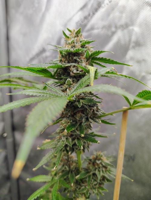 JolliGrowz27 I defoliated and lolli popped the 3 plants in the tent. I also used the bottoms to try monster cropping clones. I've never done this before. I wanted to try it to see how strange they will become. I also fed them yesterday morning 9/27/25 with Age Old Organics Bloom 5-10-5 at 2 tbsp per gallon, Age Old Organics Fish+Seaweed 3-3-2 1.5 tbsp per gallon, and a double dose of Real Growers Recharge. The plants have slowed down on stretching and are putting on weight. I had to tie one of the bottoms up for support. I used garden wire. So they're fattening up and frosting up now.