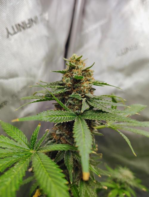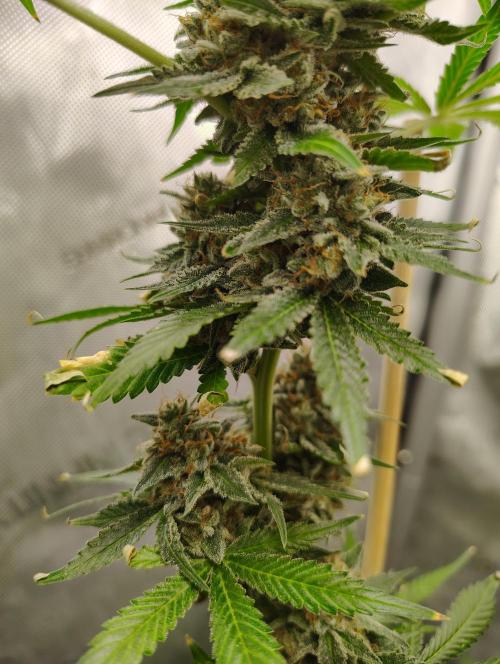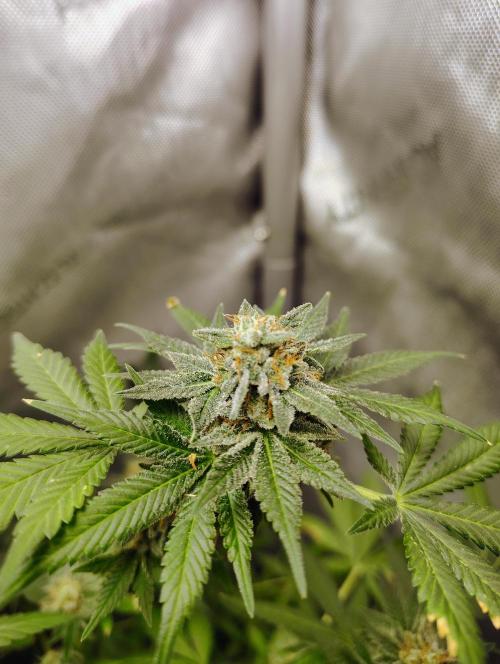 JolliGrowz27 Terps are here, I definitely made a good choice by replacing my old carbon filter. This strain is very gassy and skunky. No fruit, candy, or citrus. Pheno 2 is finally maturing now, seems she is slower to flower. She is bulking up now pheno 2. Pheno 3 is doing well, probably going to be the first to harvest. Pheno 1 is locked out and no real progress after I burned her. I'm thinking of chucking Pheno 1 or putting it outside to finish. I have clones of all the plants, ready to flip and grow flower again. I also have started 3 different strains in baggies. 6 seeds in all. 3 regular seeds and 3 fem seeds. I have No Training Wheels by TERP Fiend x3, Ocifer by Brother's Grimm x2, and Destination Wedding by Dirty Bird Genetics x1. I hope all get to sprout. If not I have back up seeds of No Training Wheels and other strains from Lit Farms.