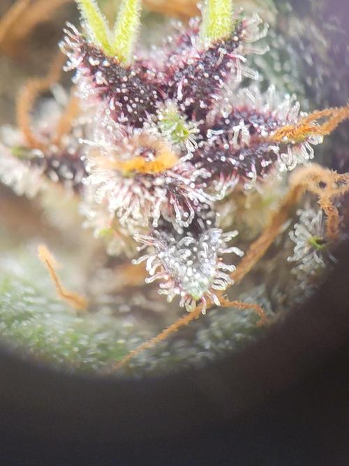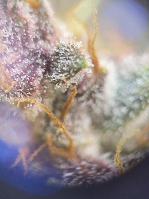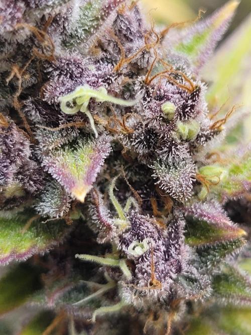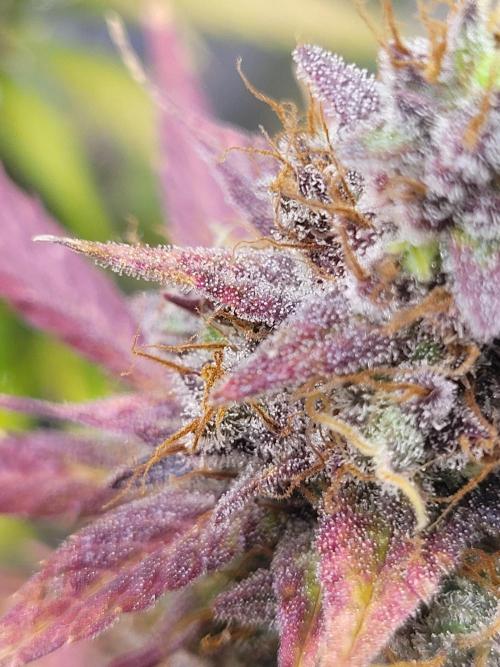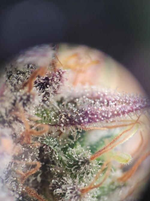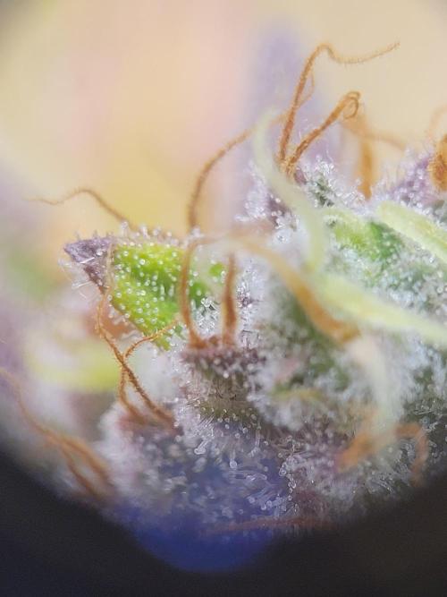 Isia also displays beautiful shades of color between dark purple and light yellow. It smells very strongly of its fruity cookie heritage and looks shiny nd sticky !