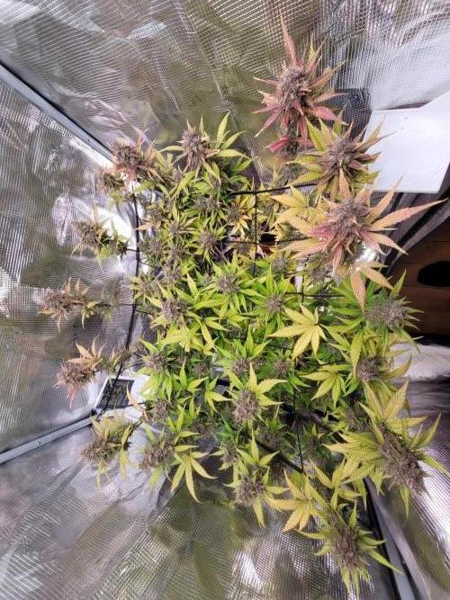 This 6th week was amazing ! Everything is flowering and start to smell so nice, like almonds and fruits ! Leaves are stretching too and looks more sativa now. Nice hybrids!
