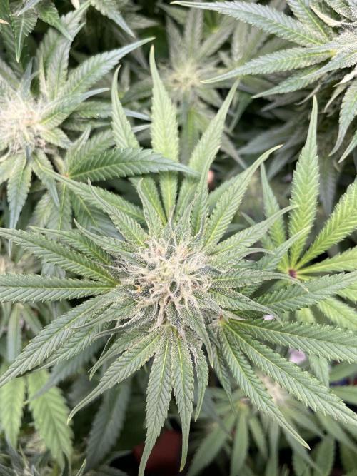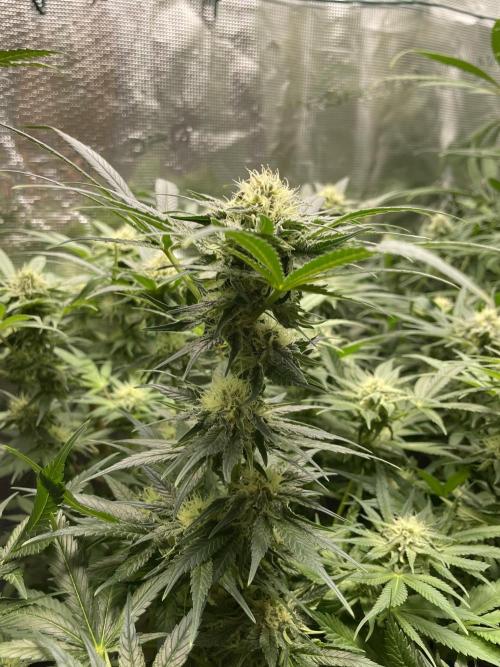 TerpToad After the first week of bloom, she is stretching much less than her sisters. Maybe she will get going in the following week, maybe she will stay a shorter but bushier plant, either way she is looking healthy and promising. I am itching on giving her a defoliation, but I will wait until we fully arrive in flower.