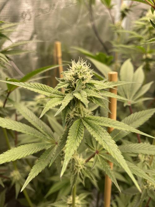 TerpToad And up she goes! First week of bloom brought a nice and even stretch on all branches. Surprisingly, this Tangerine Dream manages to keep up with her exploding sister, a Strawberry Cough.