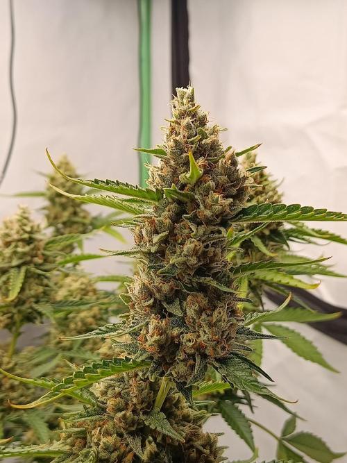 Her buds are exploding with a fresh fruity and earthy aromas, and her buds ain't getting smaller. Every budsite has a bud that is almost as big as a ping pong ball, they are very compact and reek of resin.