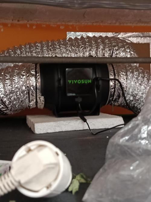 This week I installed the Infrared Heater, the green pipe, it works by being heating up to around 90°C and heating the areas and objects around the heater rather than heating the air. It kinda simulates the way heat travels from the sun onto the leaves, and you feel it on your skin the moment you get in the way of the heater.