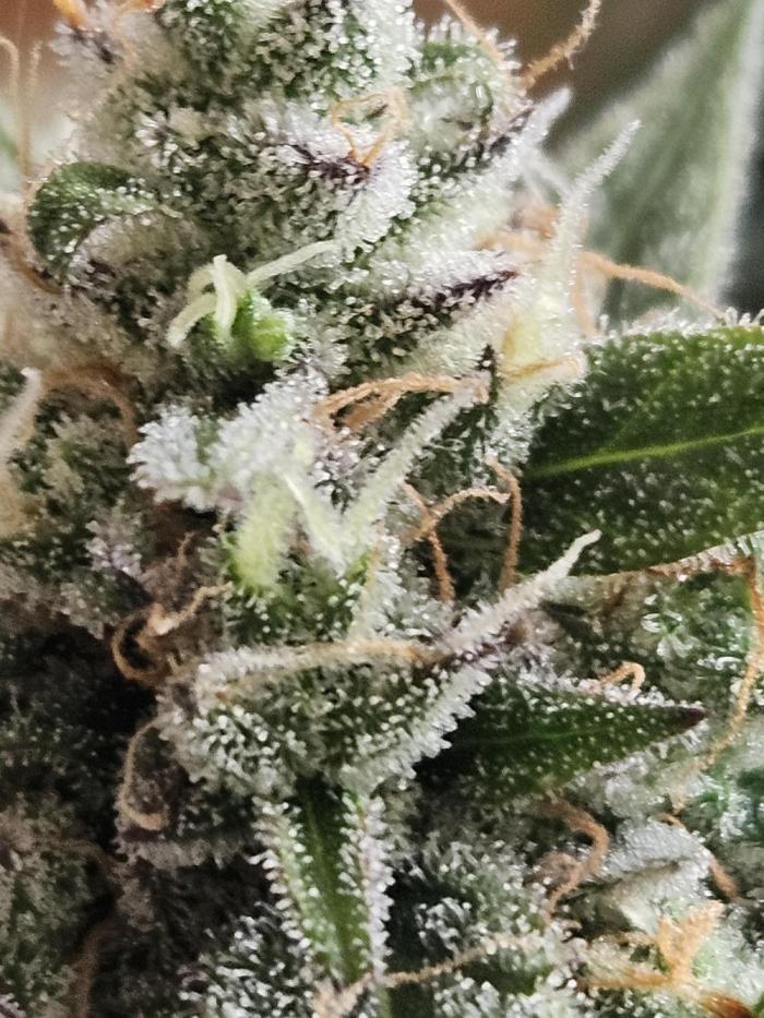 Inside_growlab What a delicious thing. I think this beauty will last another 1 to 2 weeks at most, and then it's finally time to harvest! The terpenes smell super exotic and fruity and are almost all milky. Now just a few need to turn brown, and then we'll have a great end product!