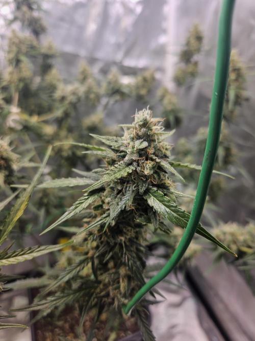 Inside_growlab What a delicious thing. I think this beauty will last another 1 to 2 weeks at most, and then it's finally time to harvest! The terpenes smell super exotic and fruity and are almost all milky. Now just a few need to turn brown, and then we'll have a great end product!