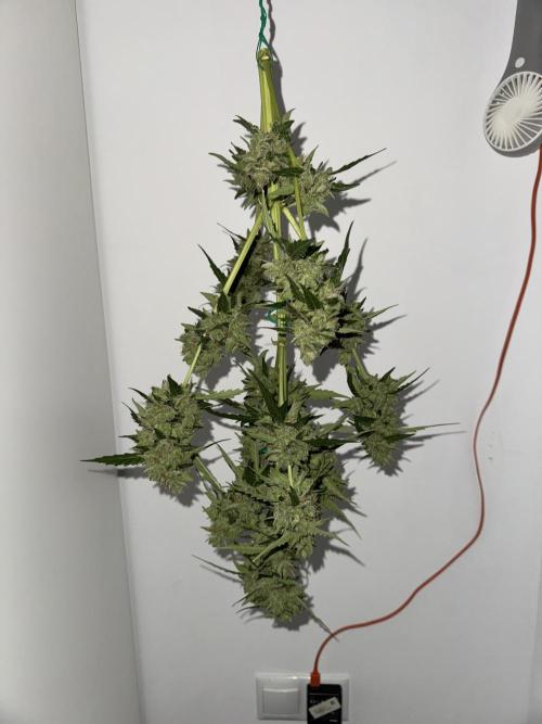 NidoR420 Well, I shouldn’t have spoken so quickly. There was actually a start of bud rot on the top bud, as visible in the video. (I had opened it beforehand, it didn't break by itself) I removed the damaged part and a bit more before hanging the plant. I let the two bottom branches grow for a few more days as planned, since there are still white pistils shooting and the buds look healthy.