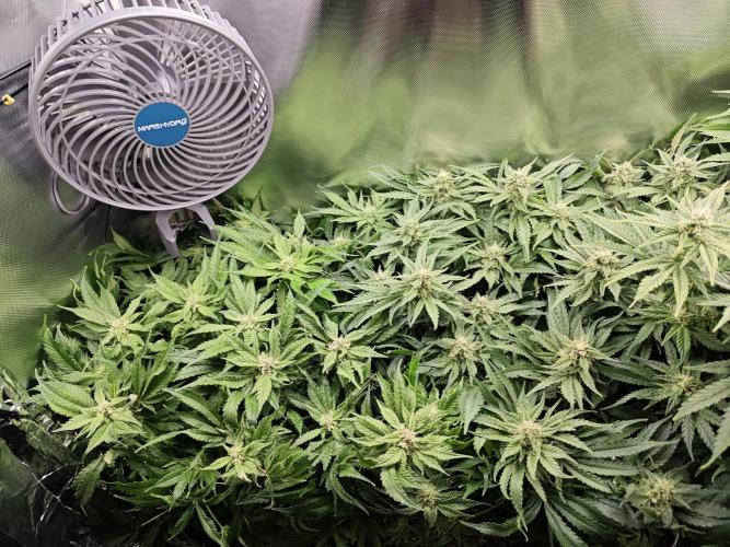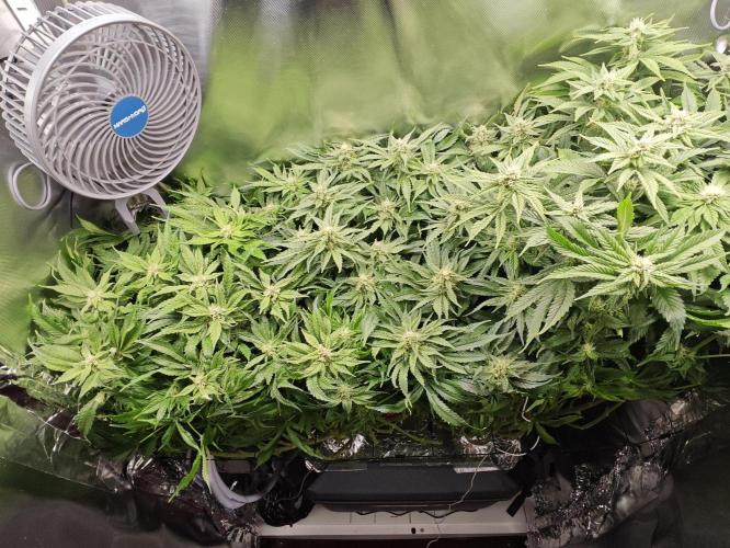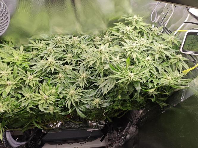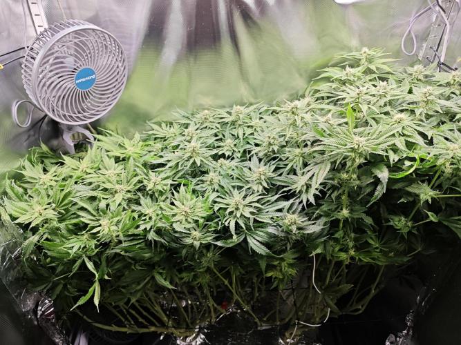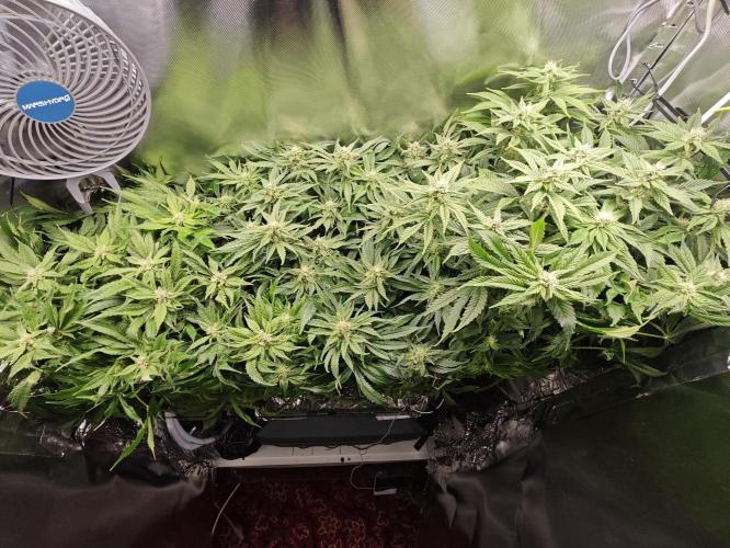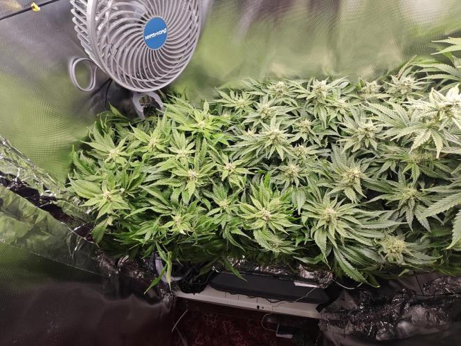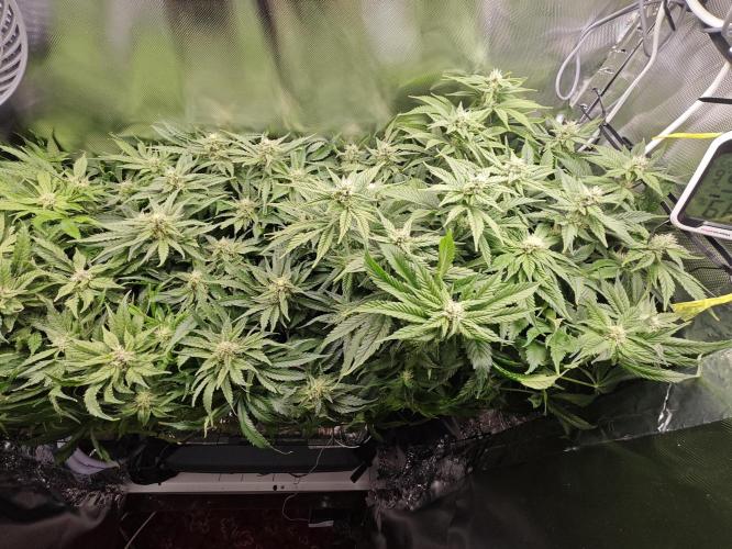 however much vertical growth you got in the last week, i'd expect at least that much before vege growth ceases. That can help decide where to draw that invisible line as far as where to lollipop. Because of how shielded lower areas are, may want a shorter depth of buds... could leave a bit more on some branches to compare your choices after harvest. Verify if your guessimate of the "larf level and below" was good or not. (branches in high-intensity light areas might get a little deeper with good buds - i.e. corners vs central area are going to have some differences)