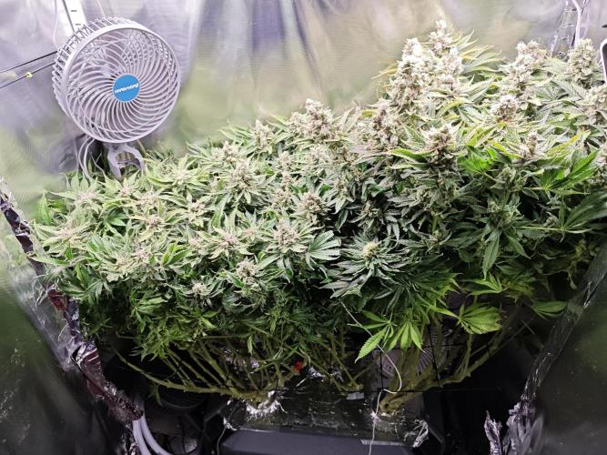 however much vertical growth you got in the last week, i'd expect at least that much before vege growth ceases. That can help decide where to draw that invisible line as far as where to lollipop. Because of how shielded lower areas are, may want a shorter depth of buds... could leave a bit more on some branches to compare your choices after harvest. Verify if your guessimate of the "larf level and below" was good or not. (branches in high-intensity light areas might get a little deeper with good buds - i.e. corners vs central area are going to have some differences)
