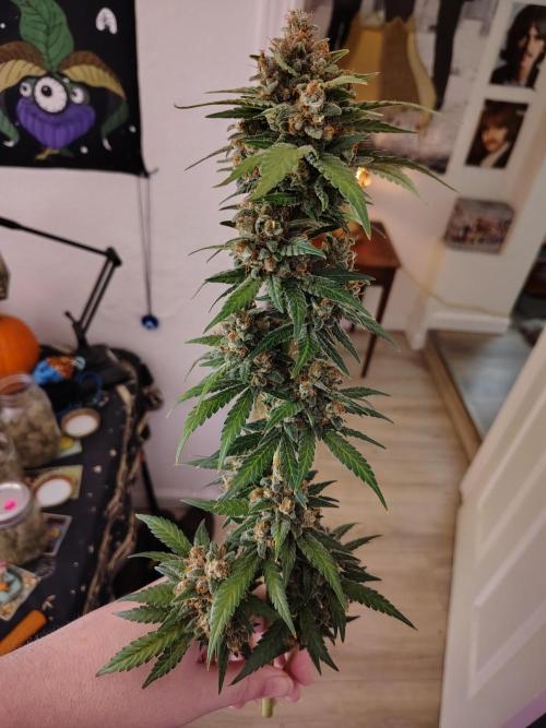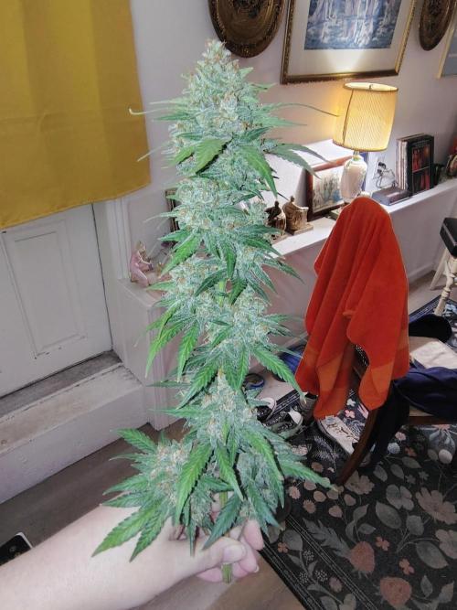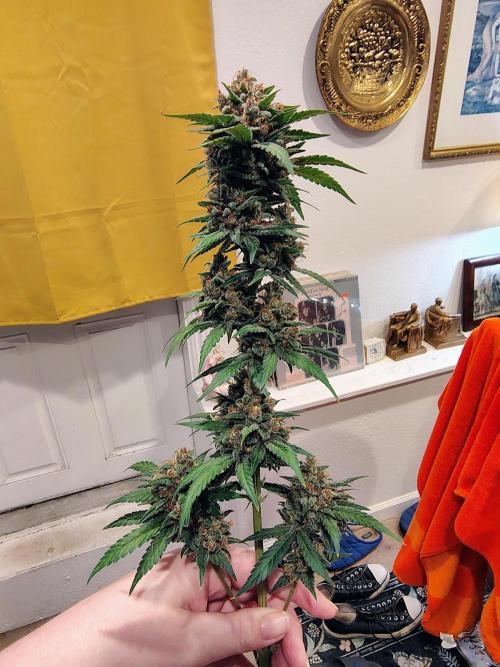 She grew very tall and long branches but wonderful smelling tight nice buds! Very happy with this strain. Beautiful purple fade before harvest