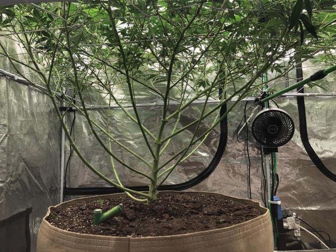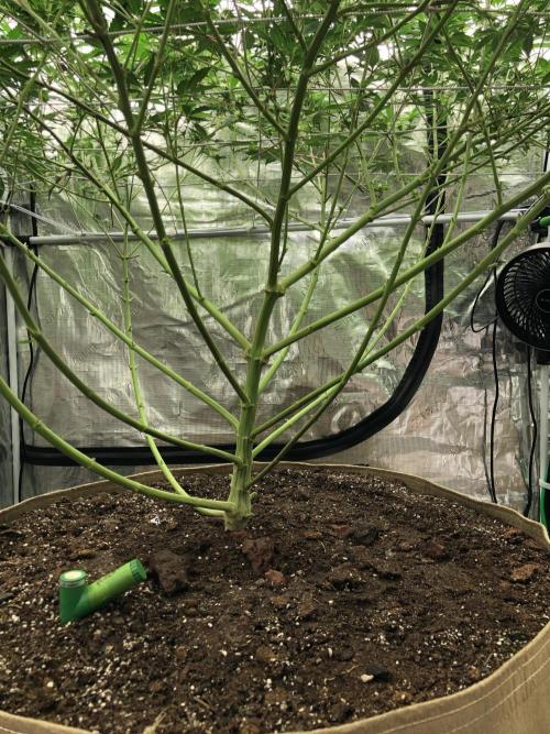 MindFlowers68 I was able to control the stretch and keep her low and lots of top shoots. Shes filled the whole area perfectly. There are some branches on the bottom that could use a slight trim but I'm not gonna go to crazy trying to get everything. She was watered once and thats about it.