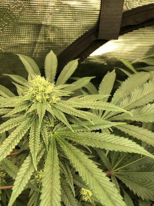 MindFlowers68 She got a little overwatered early in the week, but I let her dry out and then hit her with some compost tea at the end of the week and she is looking pretty good now if I do say so myself. The tent is getting too crowded so I'm gonna have to think about the new space for them soon until I can get them in the flower tent. Most likely it's gonna be one of my 3 x 3 tents.
