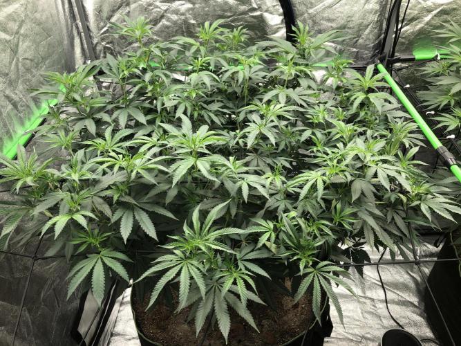 MindFlowers68 Last week I got some new soil together because I didn't have any extra hanging around. I mixed it up all by hand and then scooped it into my bins and carded it into my basement. I brewed up some boogie brew and inoculated the new soil with beneficial's. After I got the tent cleaned, I got my 50 gallon pots from a few runs ago and put the new soil in after I cooked. I did get a little heavy on the water and she smelled rich but not anaerobic. I purposefully put my two taller seemingly hungry plants with thicker stems in these pots because the schools a little hotter than normal I think. These 50 gallon pots are also shorter than my 65 gallon pots in my other tent so it works well with these plants. She finished at her last week hanging out in the studio studio. I got the 4 x 8 ready for her and transplanted at the end of the week. There were some nice looking growth this week, and really needed to be watered once. After I got done transplanting and watered in with 2 gallons. I then did a lite lolli pop and took a few old fans leaves out and opened her out. I spent a good four or five hours cleaning out the 2 4x8's for the new plants. Man after I got the new plants in, they seem to be glowing in that nice new clean tent. I'm rooting for them no pun intended.