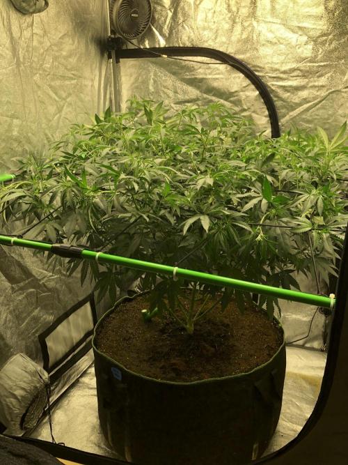MindFlowers68 This week kind of flew by and not much to report. She only got watered one time just to kinda get her settled in a little more. The soil was actually a little too wet but I tryed to let it go as long as possible but the soil was a little hot too but she's taking it fine. When I had it sitting cooking once I mixed the it up for a week before was it just a little too wet. I did a few tucking sessions and she is cooperating I only can veg for about another week before I can flip the flower due to time constraints.