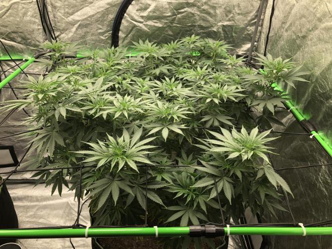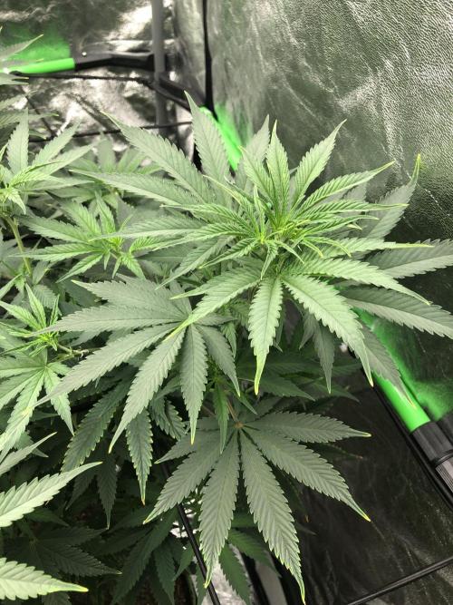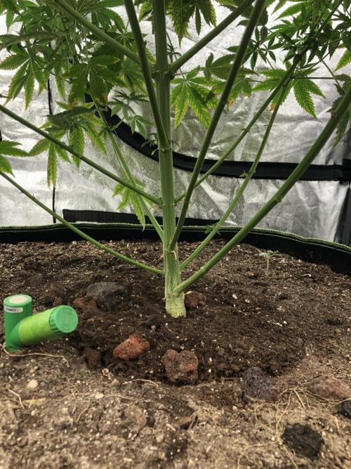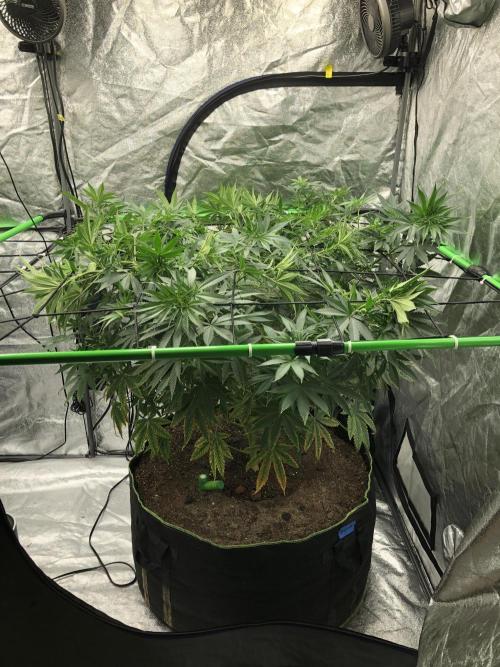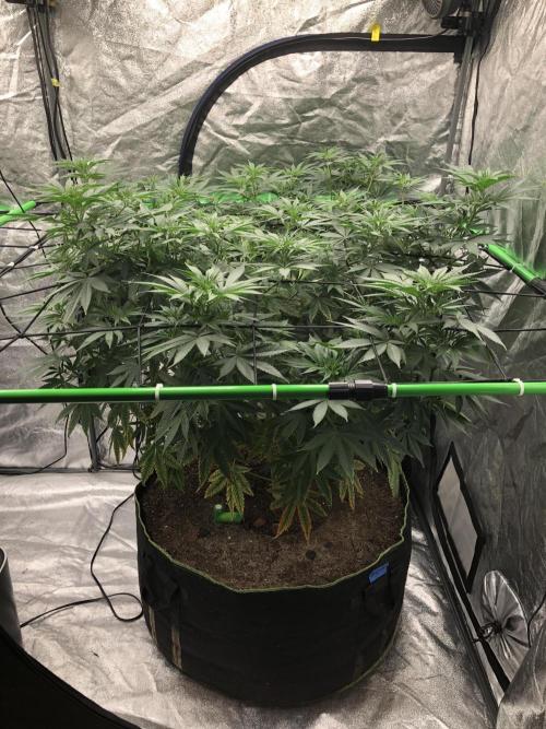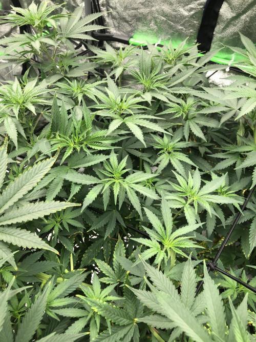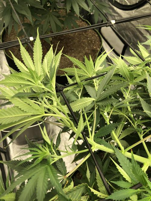 MindFlowers68 Last week I got some new soil together because I didn't have any extra hanging around. I mixed it up all by hand and then scooped it into my bins and carded it into my basement. I brewed up some boogie brew and inoculated the new soil with beneficial's. After I got the tent cleaned, I got my 50 gallon pots from a few runs ago and put the new soil in after I cooked. I did get a little heavy on the water and she smelled rich but not anaerobic. I purposefully put my two taller seemingly hungry plants with thicker stems in these pots because the schools a little hotter than normal I think. These 50 gallon pots are also shorter than my 65 gallon pots in my other tent so it works well with these plants. She finished at her last week hanging out in the studio studio. I got the 4 x 8 ready for her and transplanted at the end of the week. There were some nice looking growth this week, and really needed to be watered once. After I got done transplanting and watered in with 2 gallons. I then did a lite lolli pop and took a few old fans leaves out and opened her out. I spent a good four or five hours cleaning out the 2 4x8's for the new plants. Man after I got the new plants in, they seem to be glowing in that nice new clean tent. I'm rooting for them no pun intended.