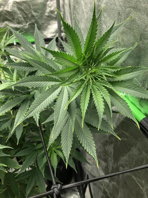 MindFlowers68 This week doing a lot better than last week and taking a liking to the environment I set up in my studio. The wash I did last week along with the trimming really helped the plant out. The structure of the plant is developing very uniform and getting an even level canopy going. The soil mites are under control now and whatever I thought was on the leaves seems to have gone away and I'm not seeing the little damage anymore. I don't know what it was. Also, I found a ladybug and decided to commission it to help out with the plants and it hung around for a few days going up and down all the plants which I could watch it from my little control room. Had also been nice being able to see my plants outside of a tent, I've been able to give them turns so that they all get equal light and each branch reaching top of canopy. I was a little worried after last week how they would react they looked like soggy feral kittens for a minute there.