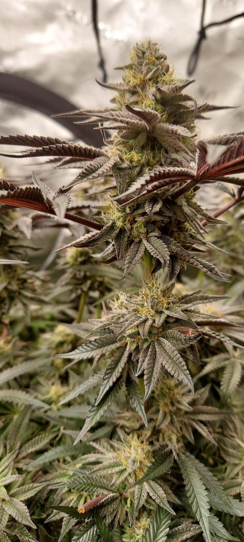Both the jedi juice and inked up cherries have two very different phenos. The inked up cherries 1 has very large buds that smell of candy. Cherries 2 has gotten so dark it's almost black at this point with big white tips. Jedi 1 is the frosiest with smell of minty citrus. Jedi 2 larger yeild than 1 but not as frosty and a fruity funky kind of smell. All very dense. Overall very happy with results so far and glad I cloned them.
