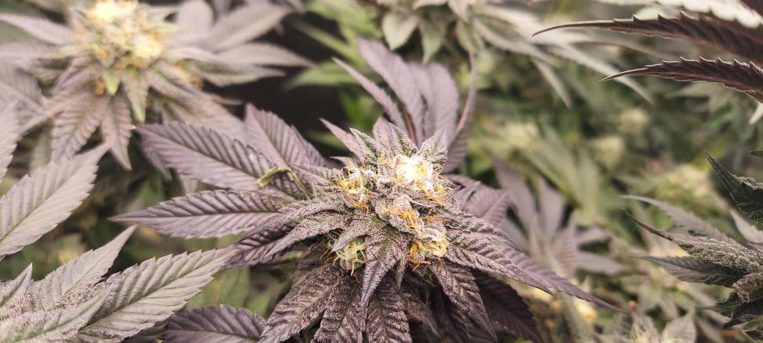 Fattening up. Smell is strong, straight candy. Purple coming through already. Final defoliation in a couple days. Now it's time to pack on some weight.